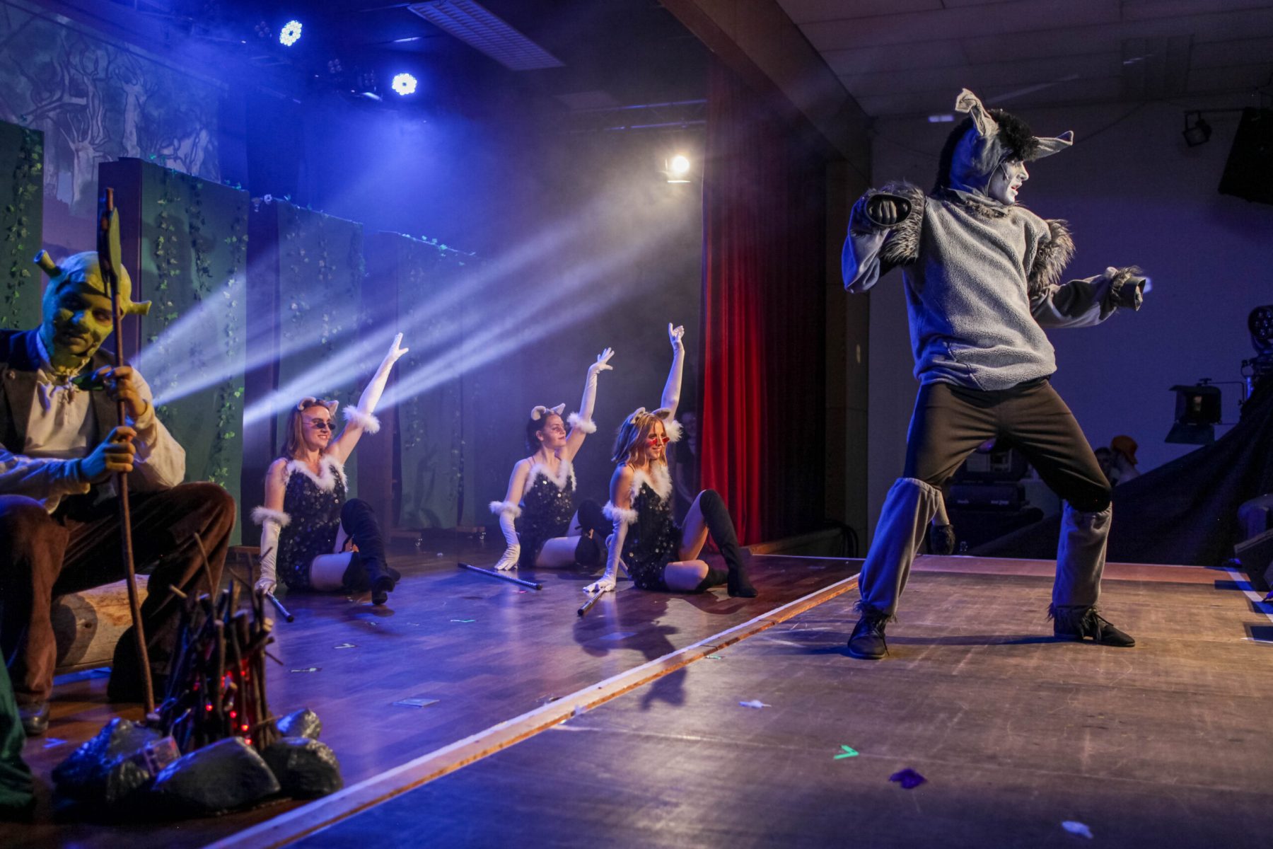 Mit „Shrek“ trat 2023 der zweite grüne Held auf die Bühne des MuKuGi. An den 6 Vorstellungen präsentierten die Mitwirkenden auf, hinter und neben der Bühne dem beinahe bis gänzlich ausverkauftem Saal einen unvergesslichen Abend.